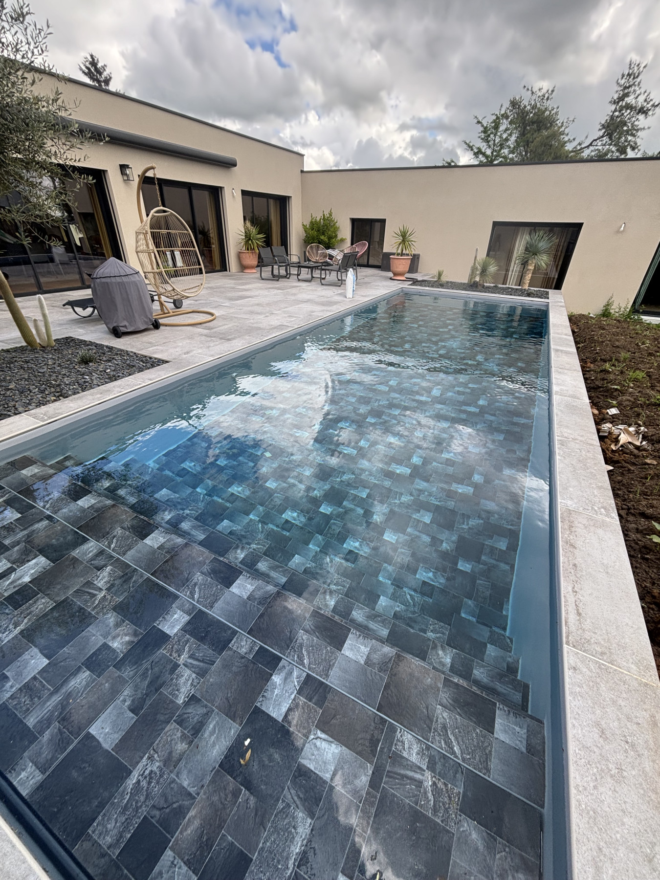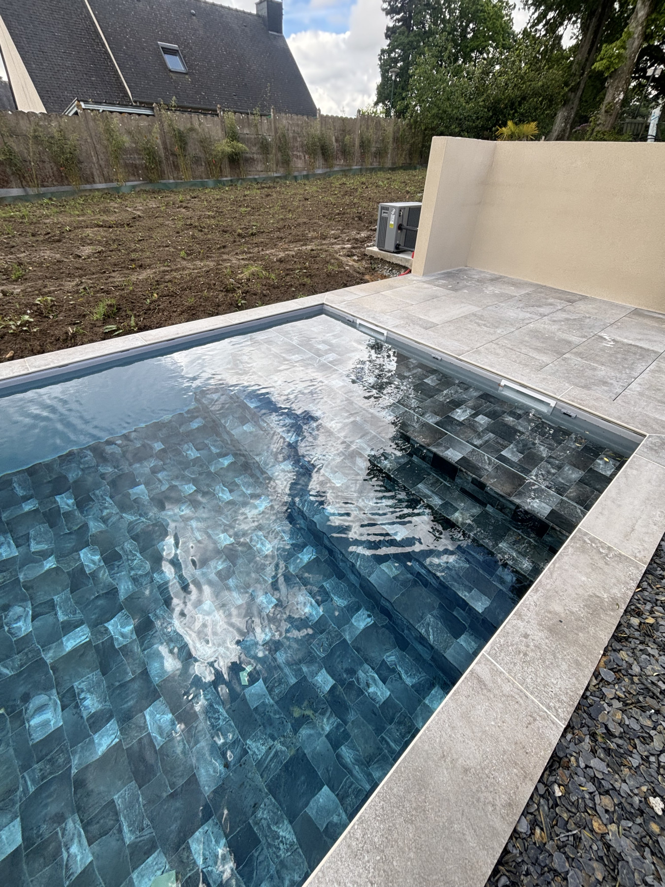 Escalier toute largeur avec banquette immergé de 107 cm