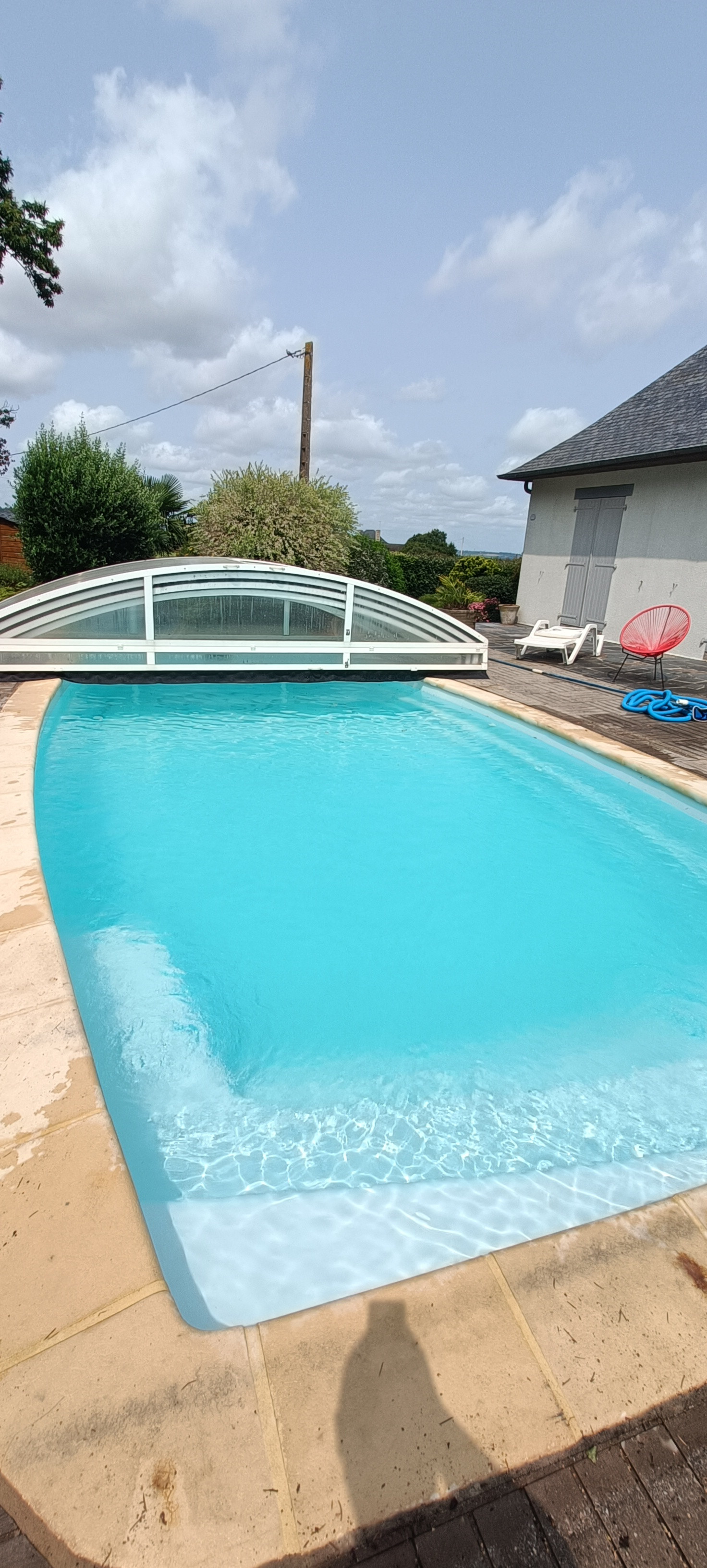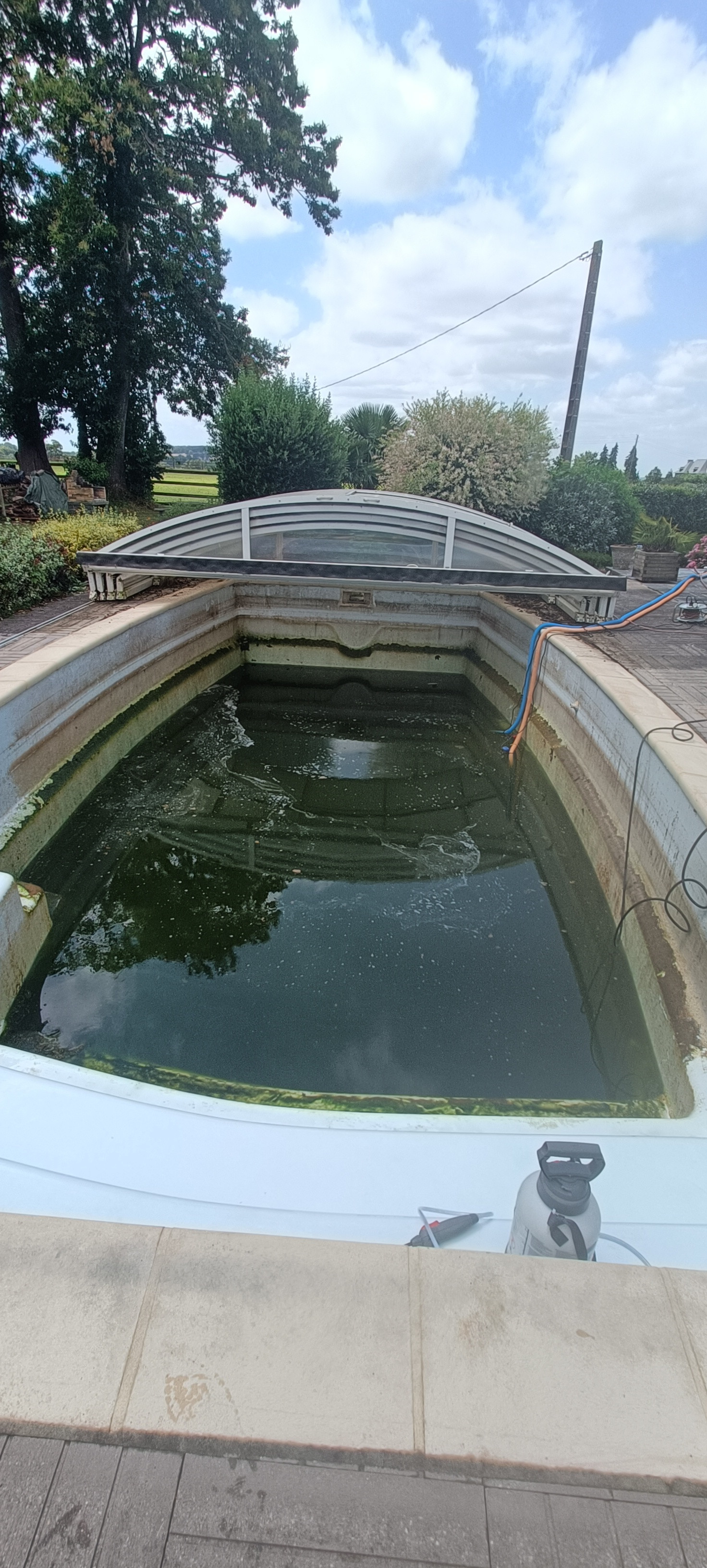 Rénovation d'une piscine mise à l'arrêt pendant 3 ans , piscine de 9.00 M X 4.25 M et d'une profondeur de 1M50 situé sur la commune de Luitré (35).