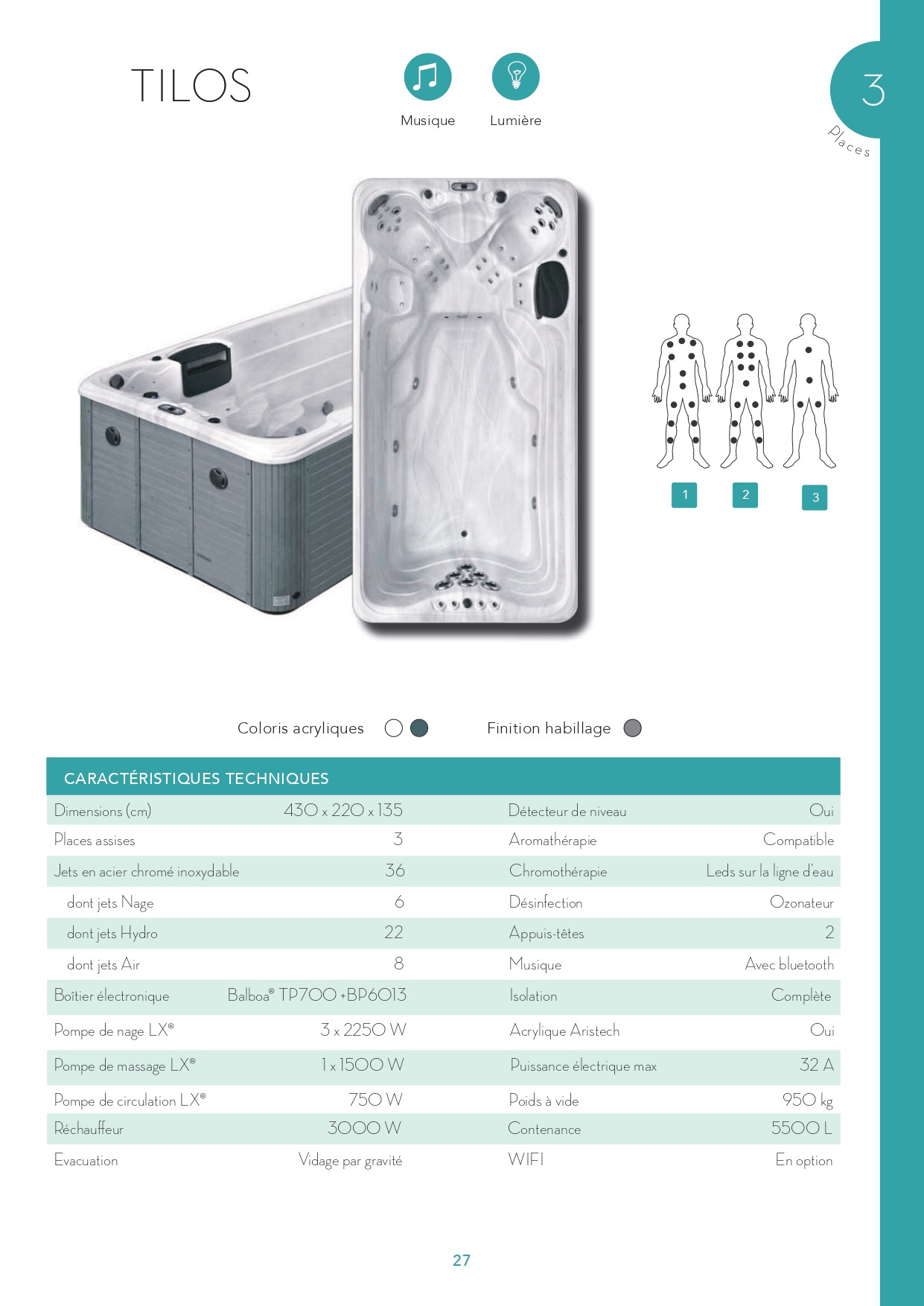 Nos spas de nage sont conçus pour embellir votre quotidien, tout ceci accompagné par de la musique, de l'aromathérapie et un système de contrôle facile d'utilisation.